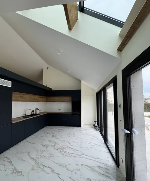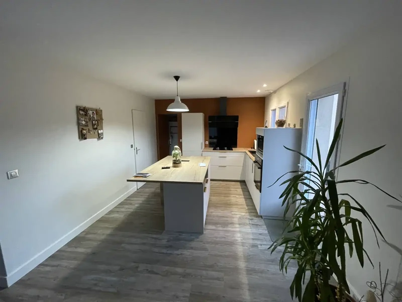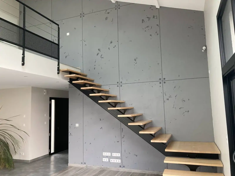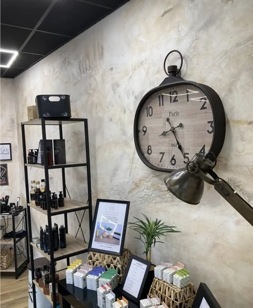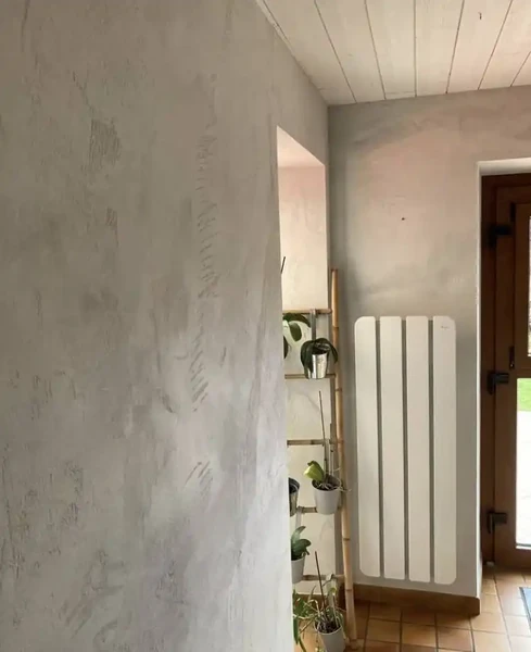 Cuisine et cage d’escalier en enduit à la chaux avec création de décor
